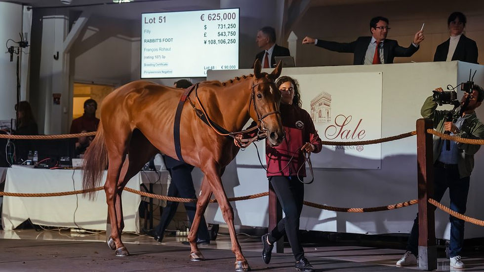 His smart daughter, last year's Group 1 Prix de Royallieu third Rabbit's Foot, made €625,000 to top the Arqana Arc Sale and is staying in training for the powerful combination of Francis Graffard and White Birch Farm.